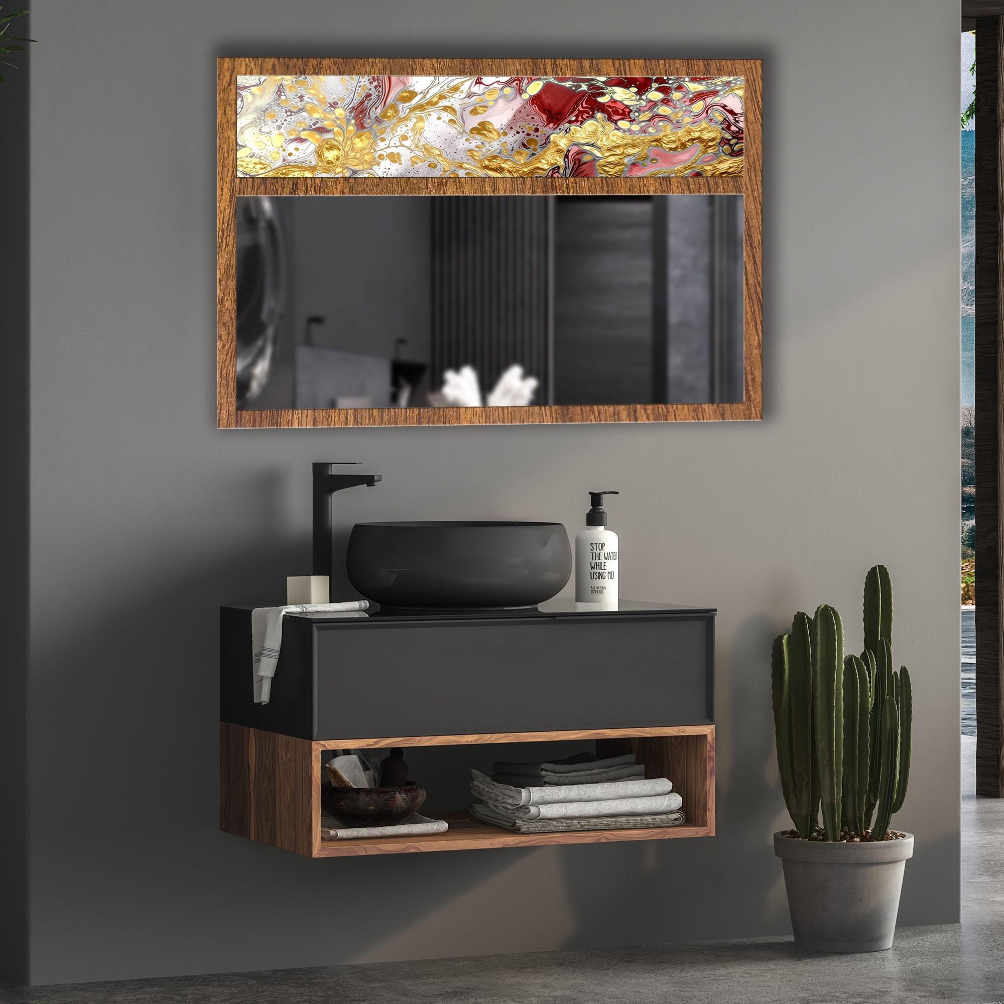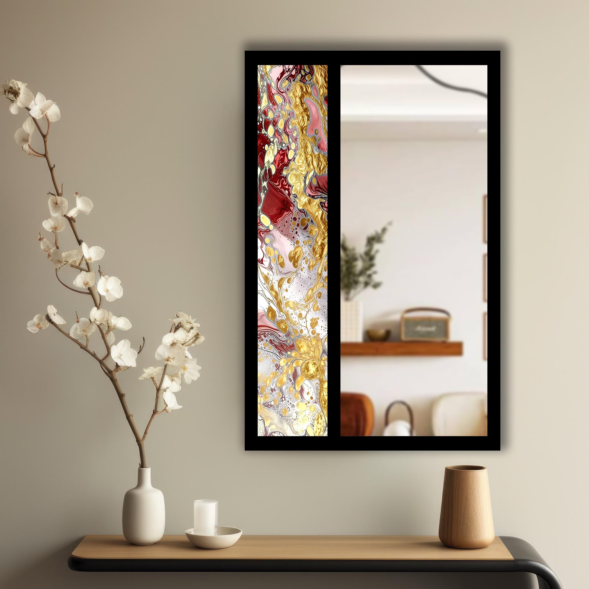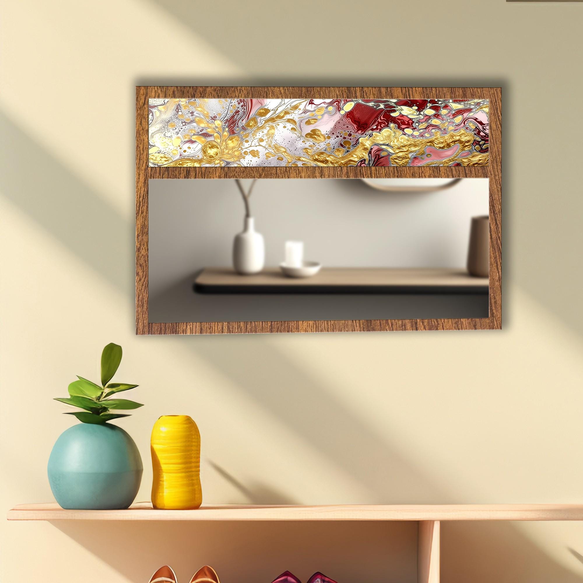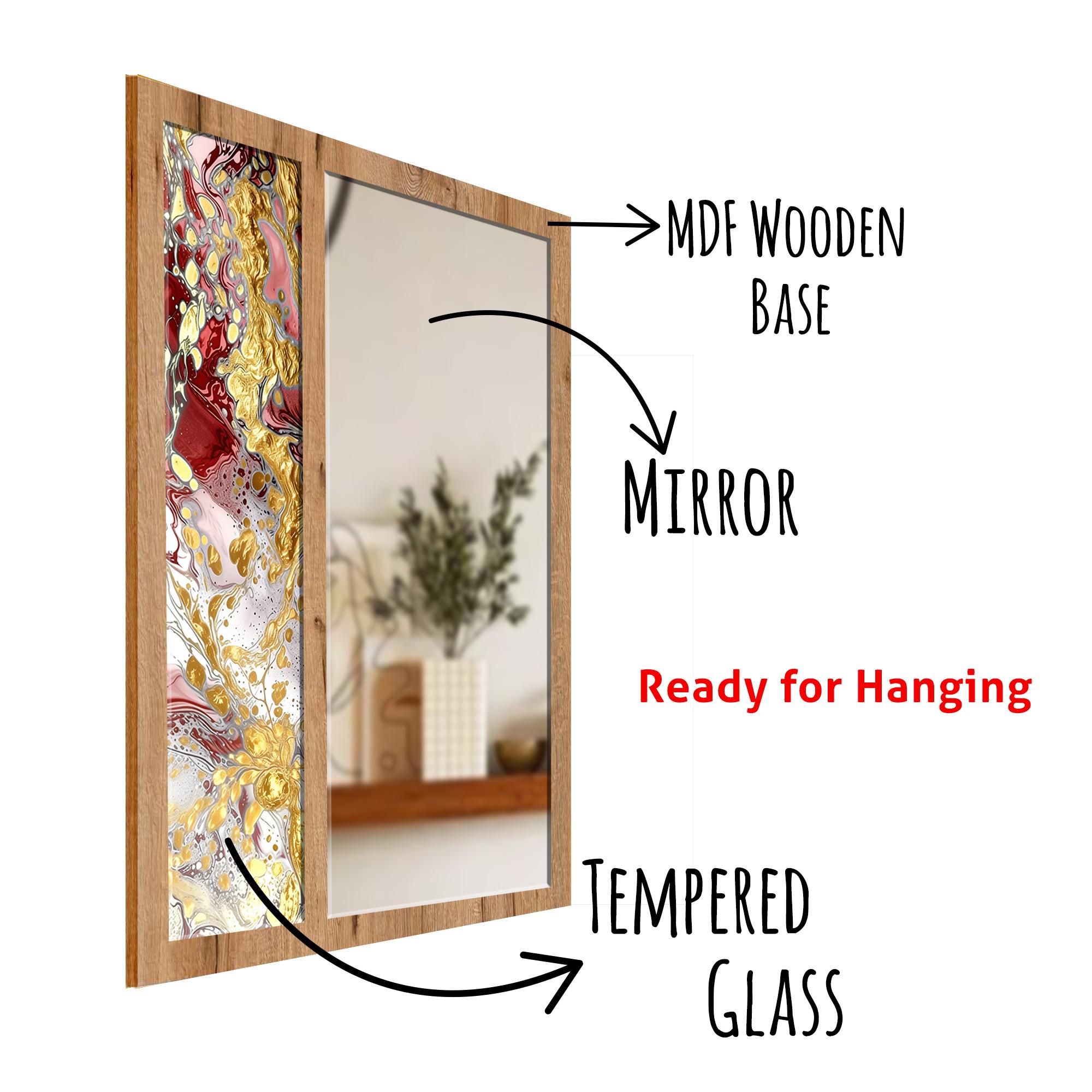 Gold Abstract Tempered Glass Wall Mirror | Decorative MDF Frame Mirror | Modern Entryway & Bathroom Wall Decor | Ready to Hang