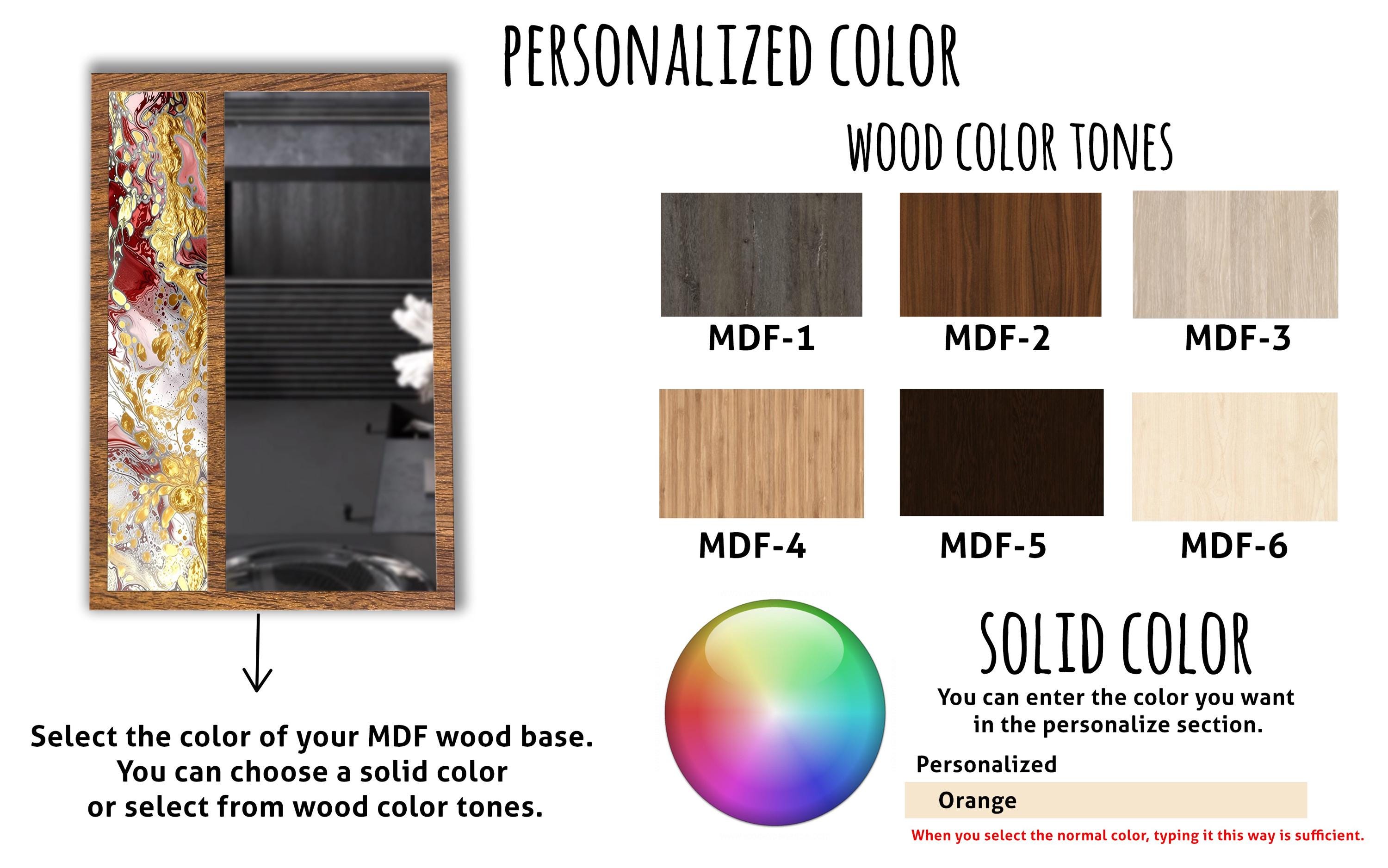 You can fully personalize the MDF color during checkout — choose from natural wood tones or request any solid color.