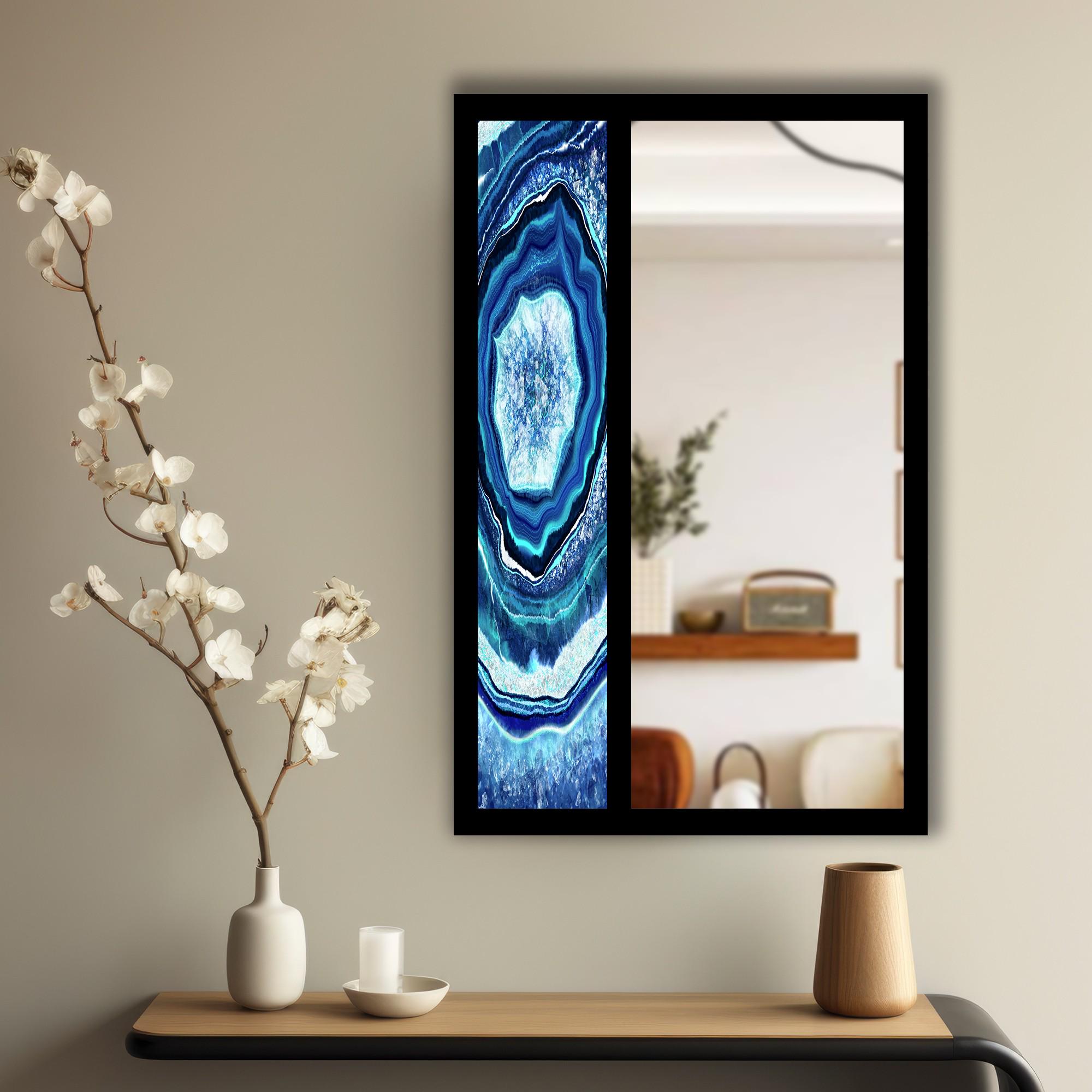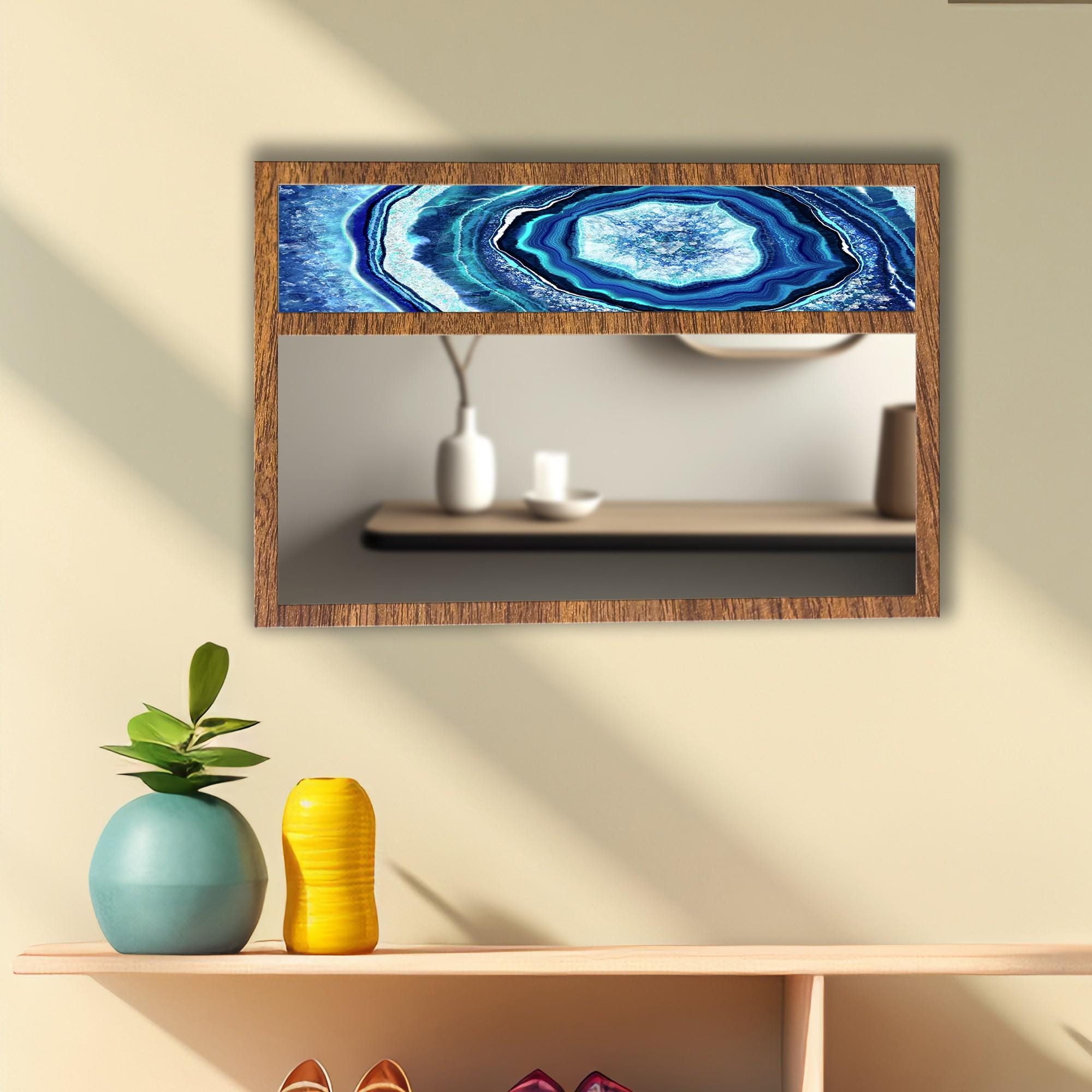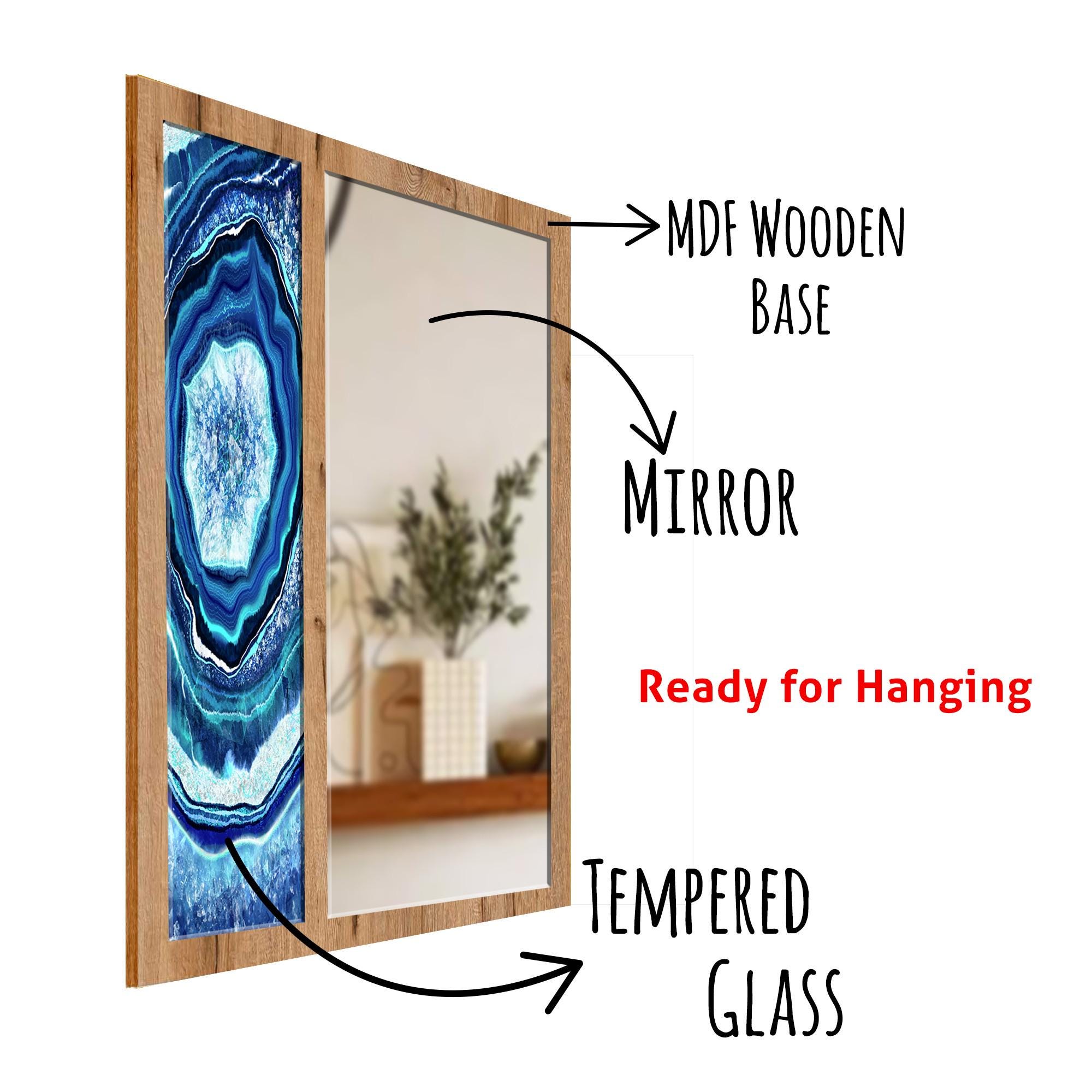 Blue Agate Tempered Glass Wall Mirror | Geode Stone Design Mirror | Decorative MDF Frame | Modern Entryway & Bathroom Wall Decor