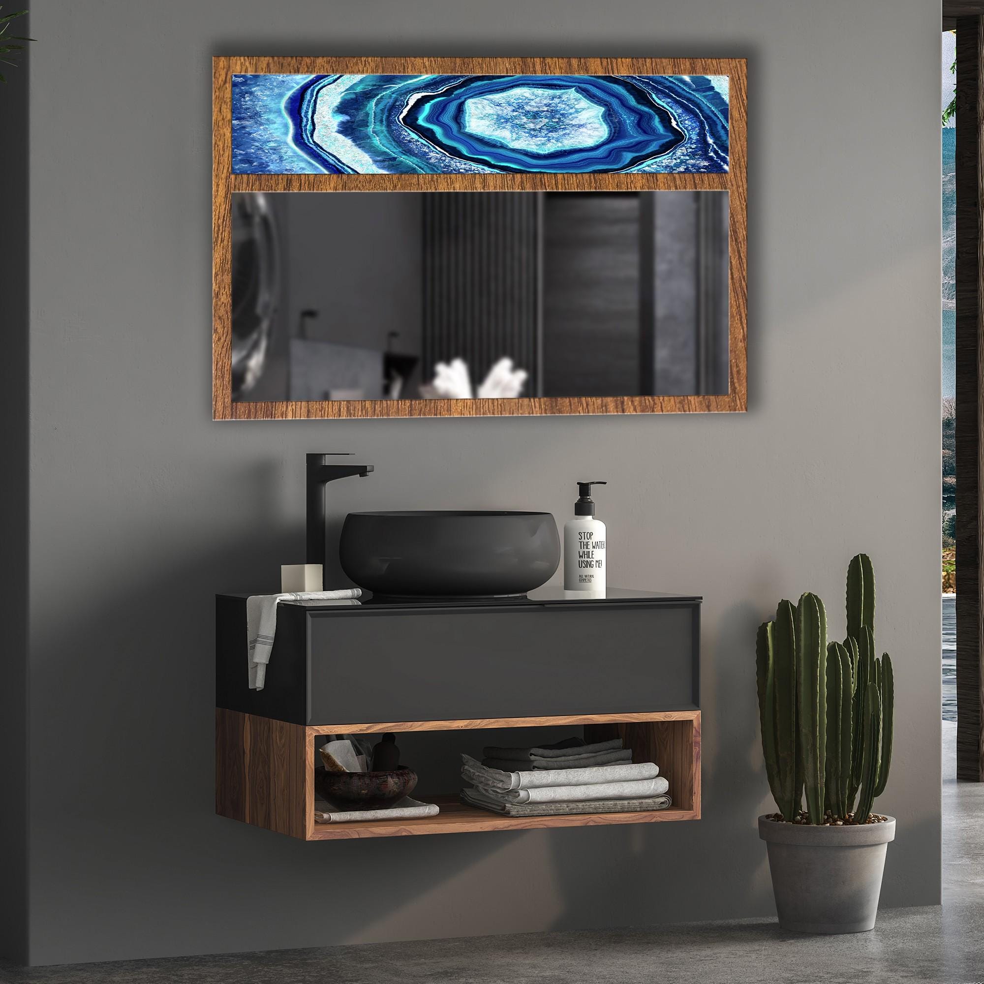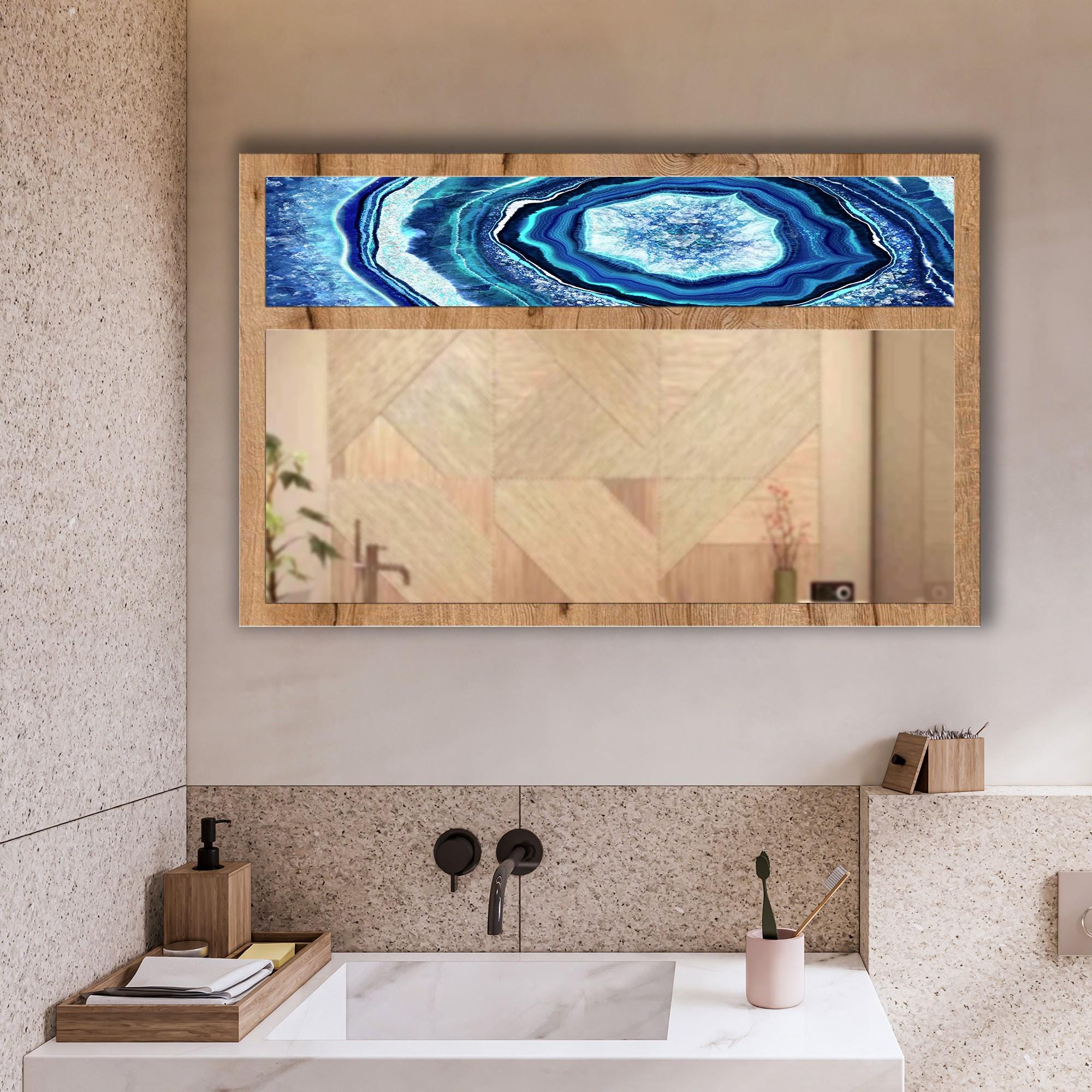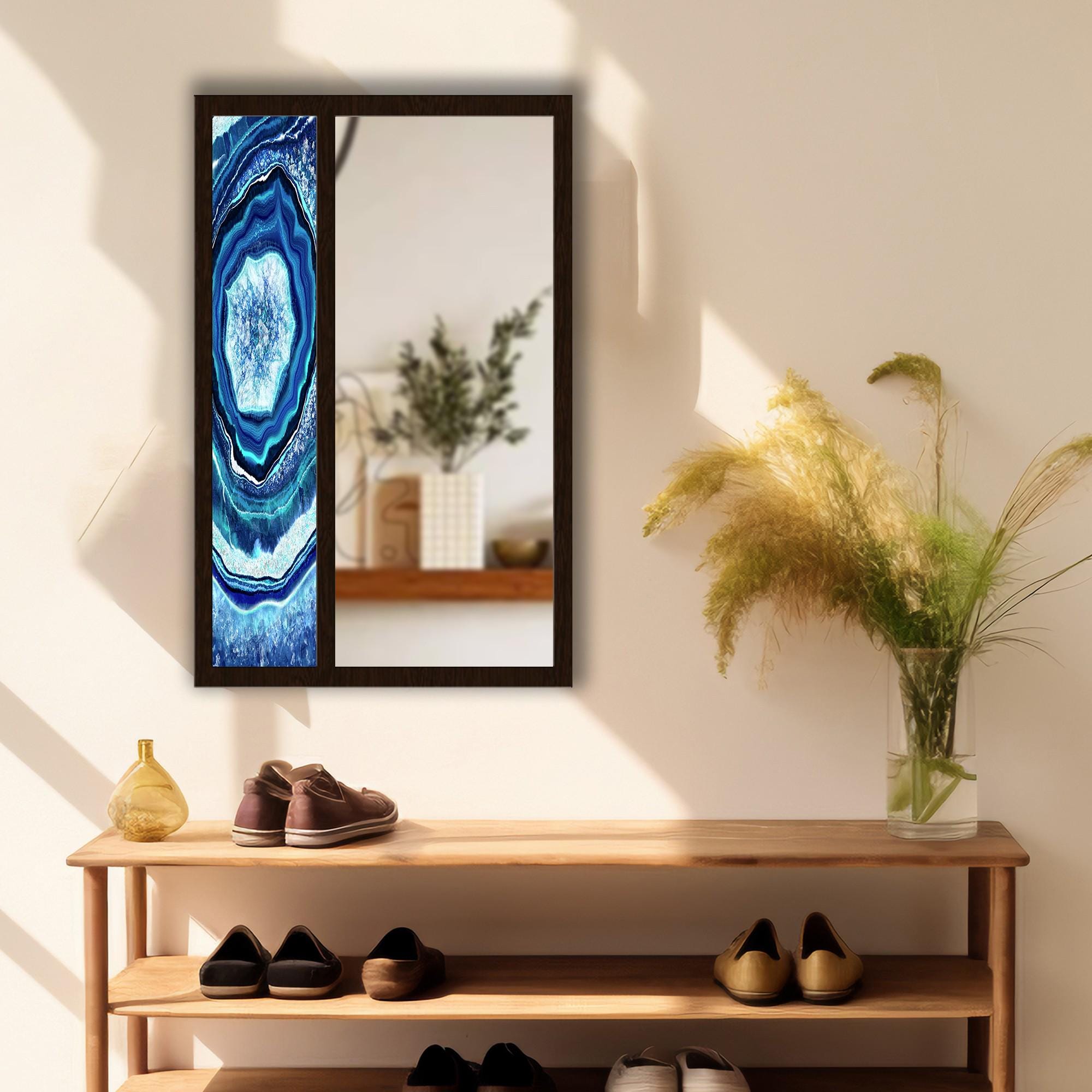 Blue Agate Tempered Glass Wall Mirror | Geode Stone Design Mirror | Decorative MDF Frame | Modern Entryway & Bathroom Wall Decor