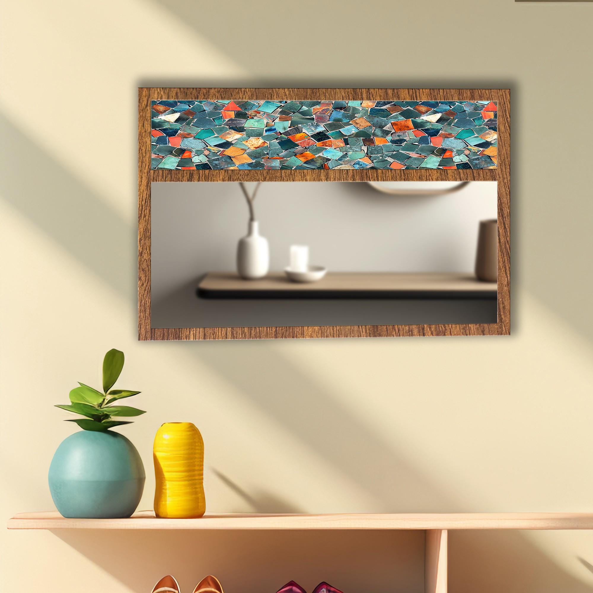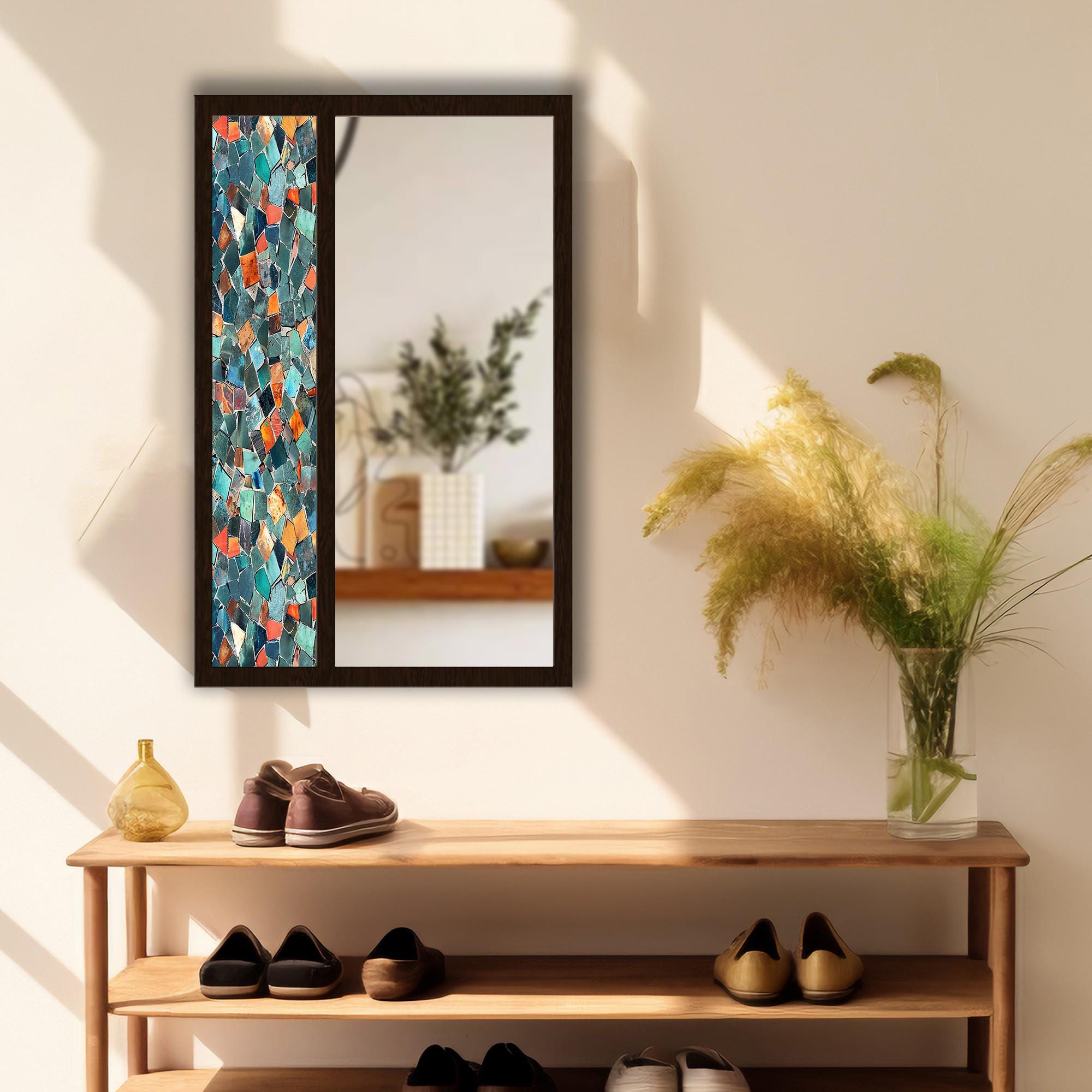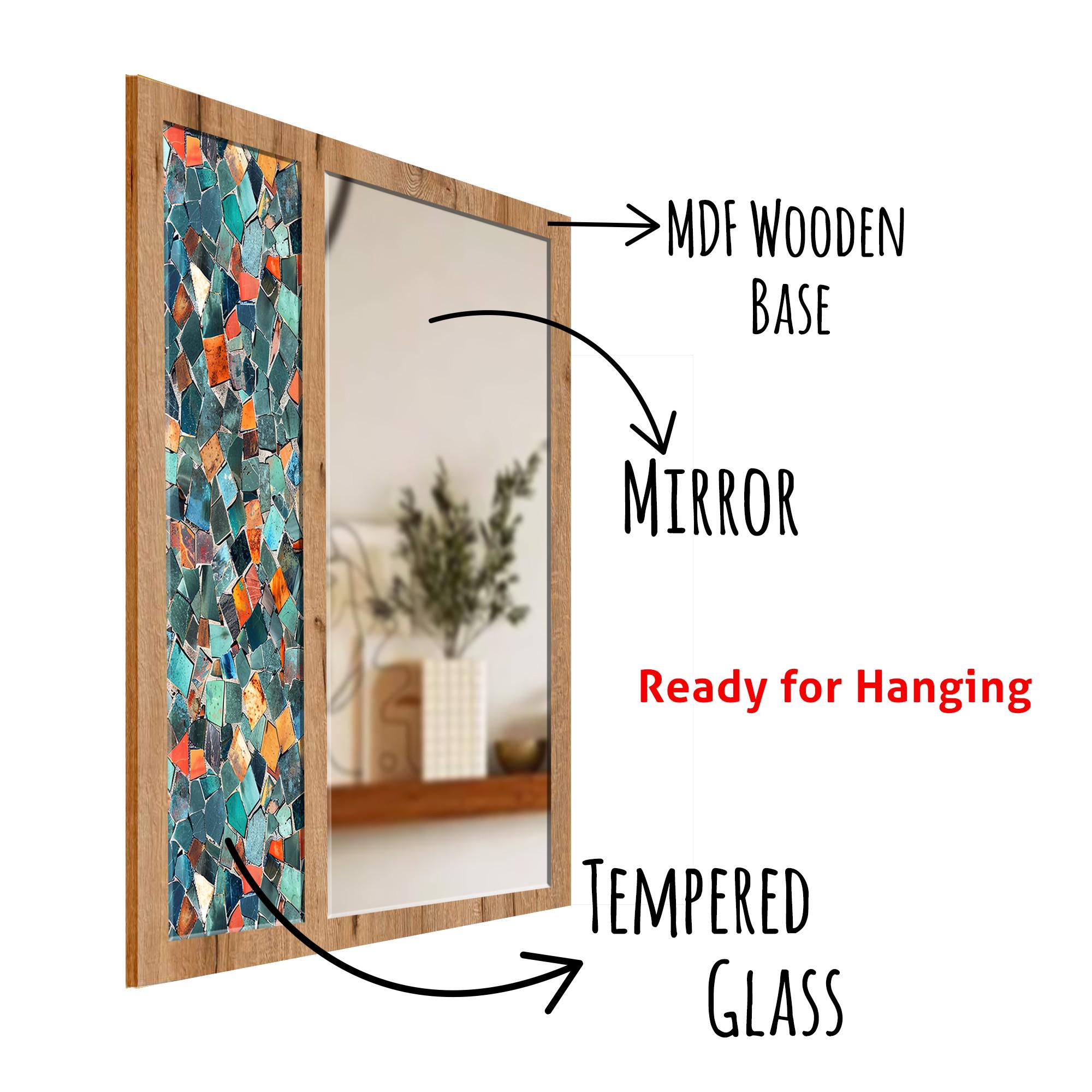 Transform your home with this beautifully handcrafted Mosaic Tempered Glass Wall Mirror, designed with a premium MDF wooden base, a vibrant UV-printed tempered glass panel, and a high-clarity mirror finish. This elegant 3-layer construction creates a unique decorative piece that blends functionality, texture, and modern design — perfect for enhancing any room in your home.