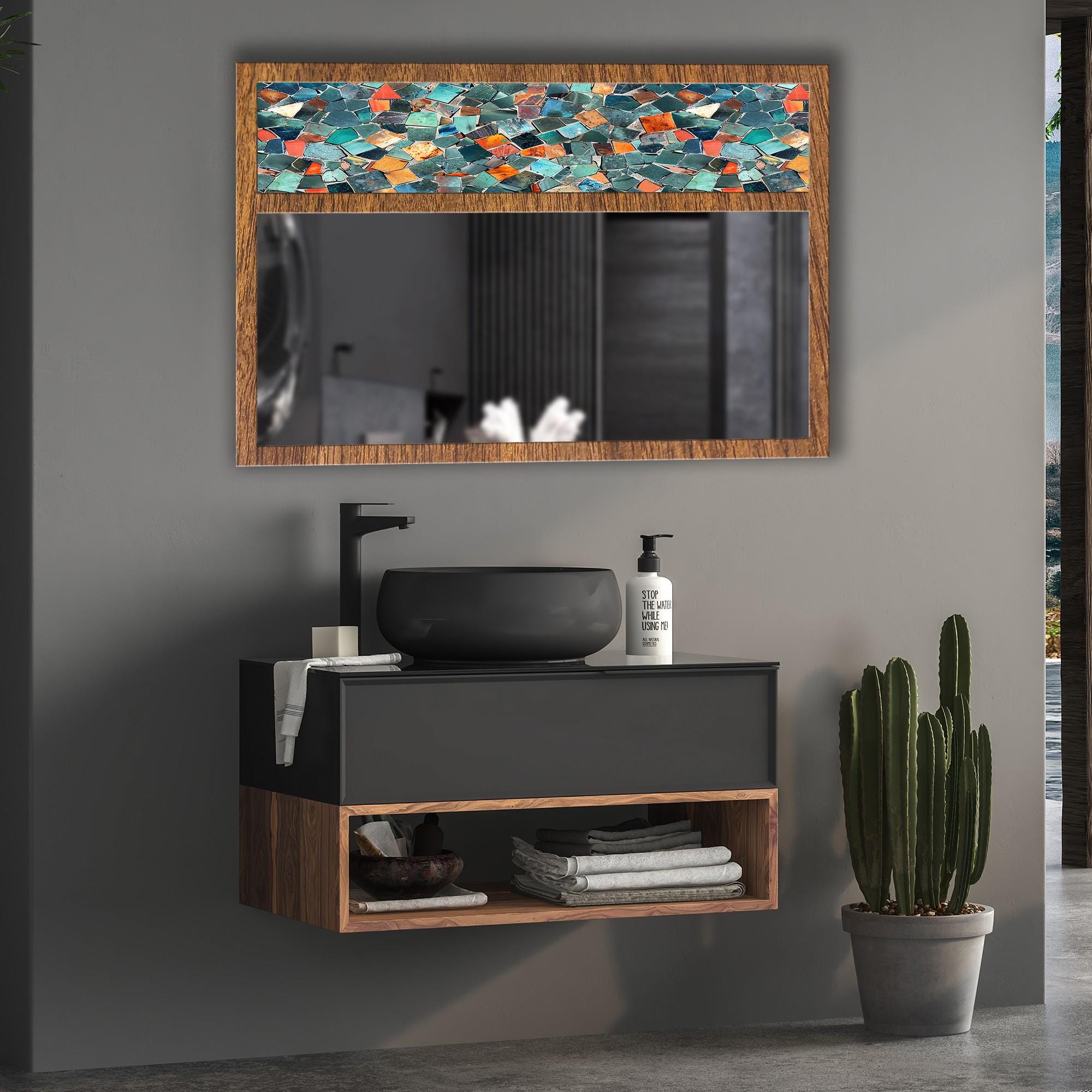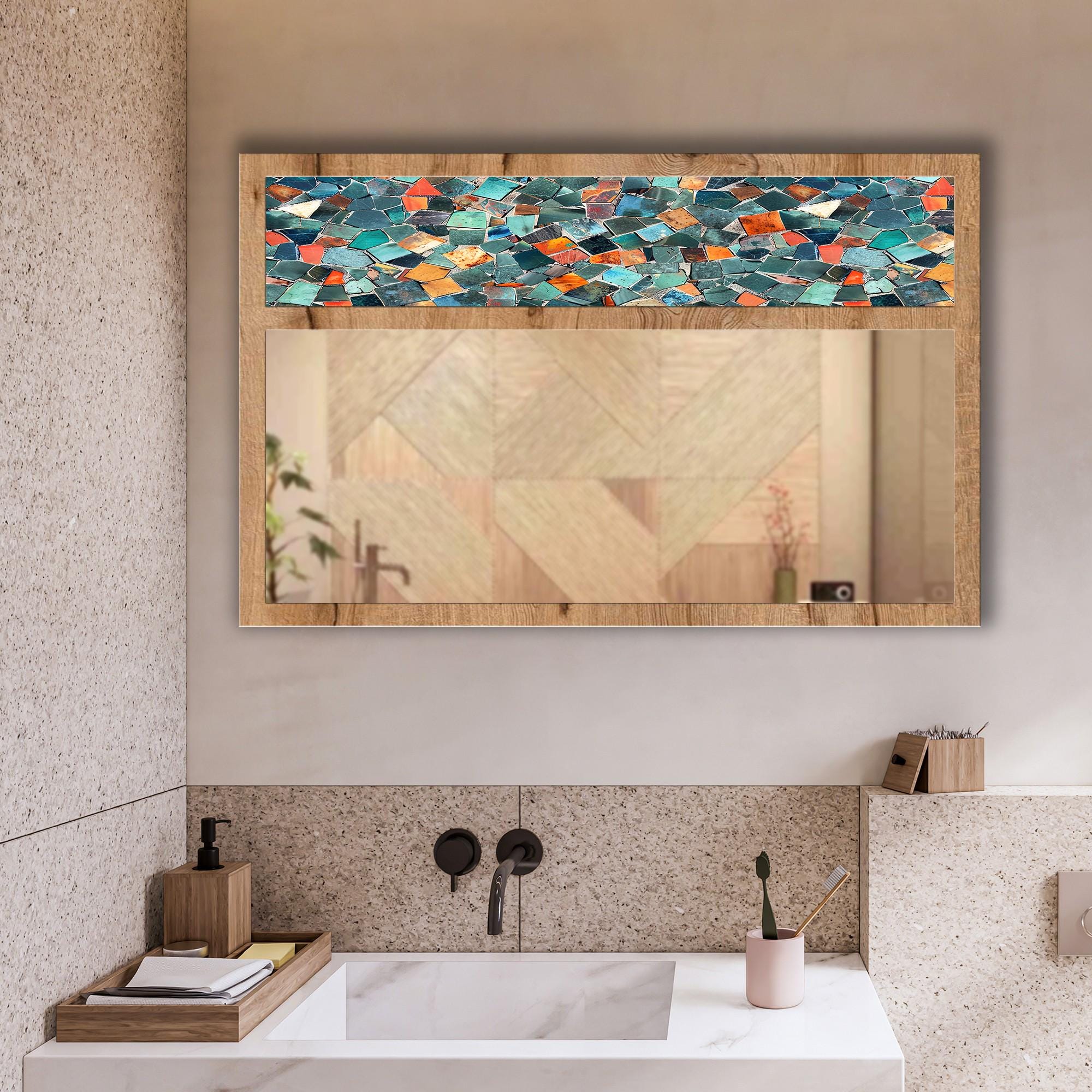 Colorful Mosaic Tempered Glass Wall Mirror | Decorative MDF Frame Mirror | Boho Modern Bathroom & Entryway Wall Decor | Ready to Hang