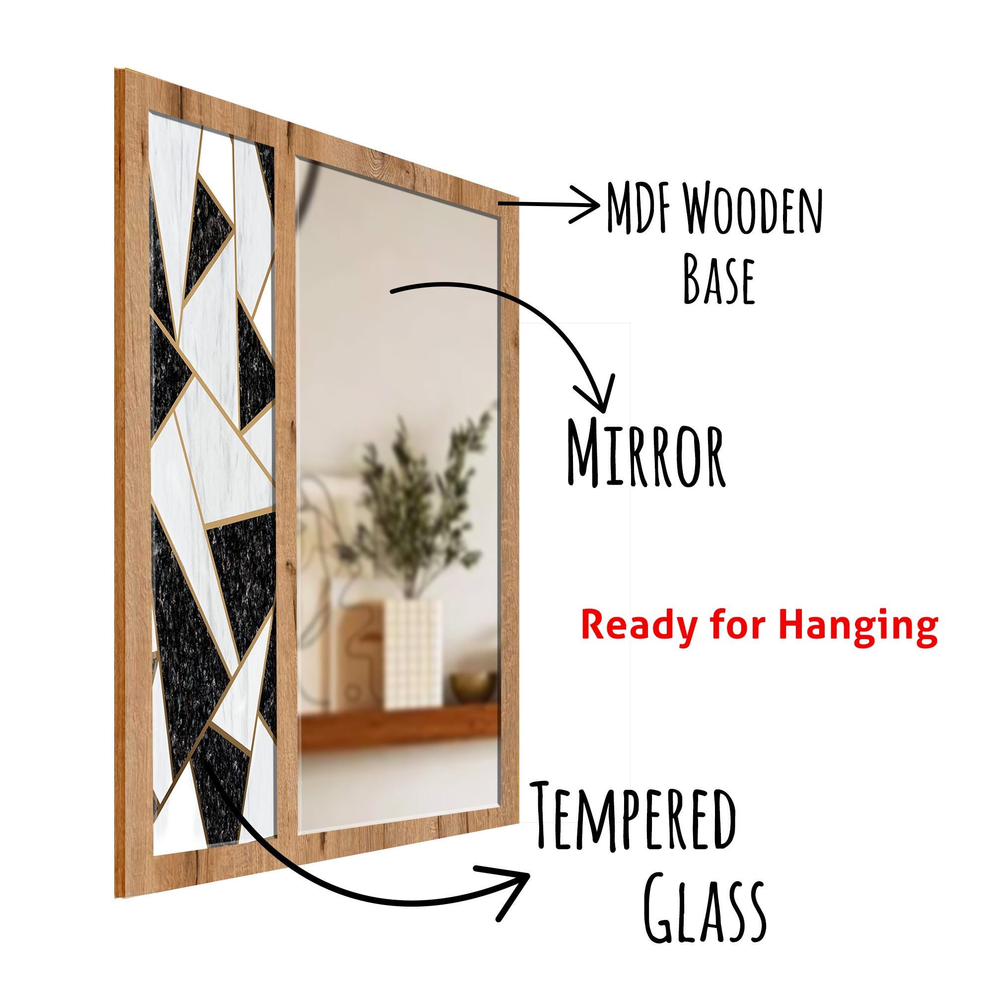 Transform your home with this beautifully handcrafted Mosaic Tempered Glass Wall Mirror, designed with a premium MDF wooden base, a vibrant UV-printed tempered glass panel, and a high-clarity mirror finish. This elegant 3-layer construction creates a unique decorative piece that blends functionality, texture, and modern design — perfect for enhancing any room in your home.